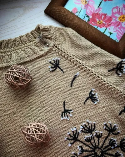 Какая красота. Действительно ПРОИЗВЕДЕНИЕ! Влюблена. Красивая получилась вышивка. Очень украсила свитер. Да и сам свитер не подкачал. Интересное сочетание цвета.