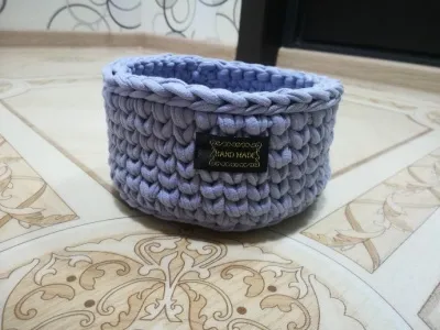 Изготовлено из трикотажной пряжи, на данную корзинку ушло половина моточка!