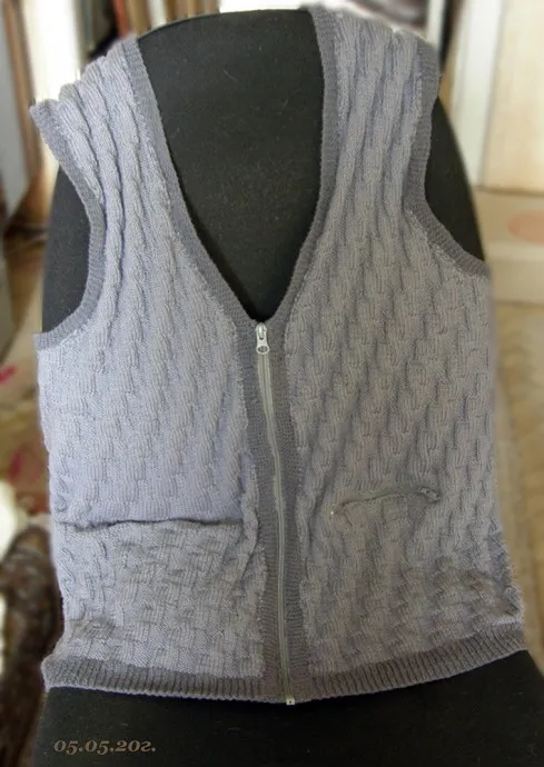 Жилетка связана во время карантина. Вязал для работы. основное требование: карманы, комфорт. Связана из ниток Ярна Меринос 100%. пряжа предназначалась для школьной жилетки внучке. Когда она была связана, внучка отказалась носить. Изделие было распущено. Клубки три года лежали ждали своего часа. А он всё не приходил. Я работаю водителем троллейбуса в Киеве и после работы хотелось отдохнуть в полном безделии. А жилетка водителю нужна ( большей частью нужны карманы - для документов, ручки, блокнота, очков, зажигалки и пр.). И вот УРА! Карантин! Троллейбусы в Киеве не ходят (не ездят, не возят, не работают). Неделя безделья - терпимо. Две - уже тяжело. Что-то по квартире - мелочь. А ведь лежат в запасе клубки. Жилетка получилась лёгкая, тёплая. И в ней есть четыре кармана. Карманы сшиты из плотной ткани (вязанные карманы долгой носки не выдерживают). В них вшиты замки "молнии". За тем конструкция кармана пришивалась к вязаному полотну жилетки. Рисунок узора простейший: "шахматы", каждый следующий ряд связан со смещение на полквадратика. Получился объёмный узор. Нижняя резинка 1х1 , край полочки и кант рукава связаны нитью другого цвета платочной вязкой. Основной узор: квадратики из лицевых и изнаночных петель 6п х 10 рядов. Спицы Д 3мм. Жилетка связана без швов: на круговых спицах вязались полочки и спинка одновременно. Плечевые швы сделаны простым попарным закрыванием петель. Спереди и на карманах замки" молнии".