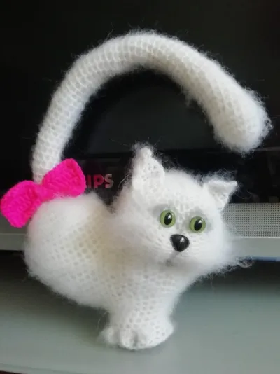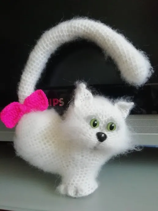 Представляю Вашему вниманию Влюблённого белого котика. Мягкий и пушистый. Стоит на проволочном каркасе. Рост вместе с хвостиком 25 см.