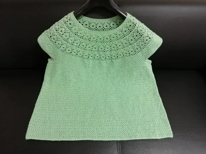 Вот, представляю на Ваш суд свое новое творение - летний топик крючком.