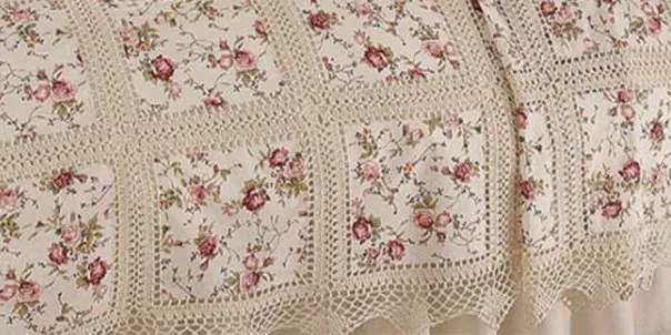 Достаточно обвязать квадраты всего лишь несколькими первыми рядами по схемам, а остальной рисунок применить для каймы на покрывале.