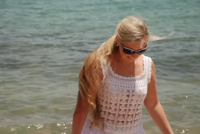 Связано из хлопка .Нитки кировского ком6ината.Красиво,но сильно подсаживается.Не сразу-в процессе носки и стирки.