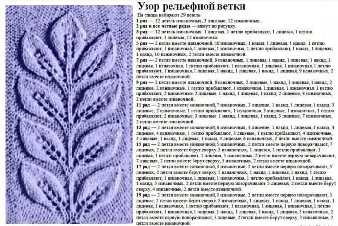 Узор листья спицами