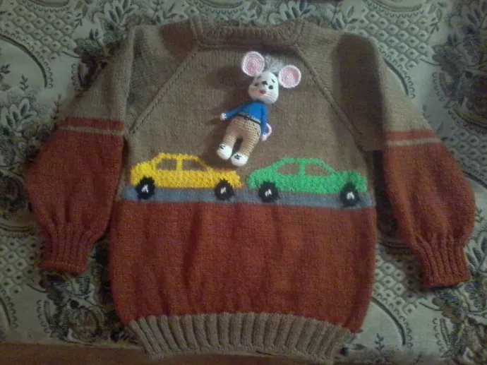 Классный подарок Людочка! Умница! Такая филейка интересная! а свитерок с машинками-прелесть Внук теперь будет стараться машинки оттуда вытащить
