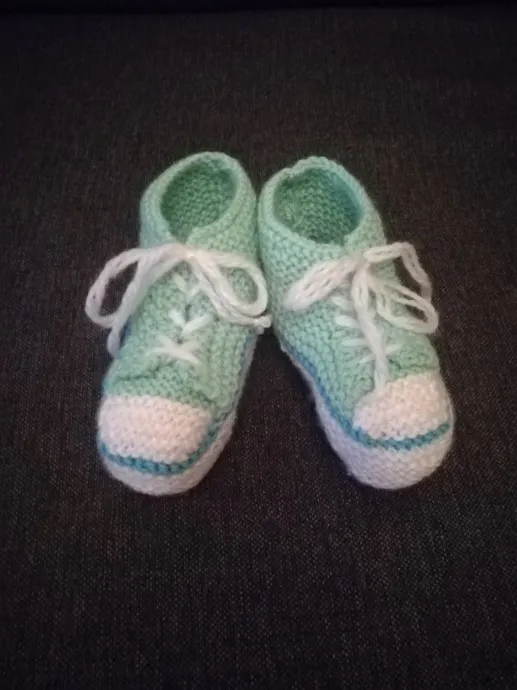 Вязаные кеды из полушерстяной пряжи, для двухлетней внучки.