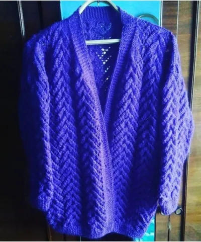 Очень красивый кардиган. Всё в нём сошлось — и цвет, и узор.