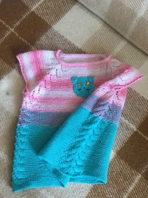 Очень красивый реглан, интересная задумка, туничка вышла замечательная. Аппликация котейки чудесно завершила образ детской одежды, браво!