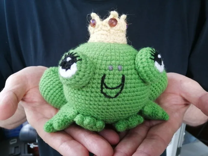 - Довязала, успела как раз до конца марафона. Вязала маме на подарок, она у меня очень любит лягух. Получился такой лягушачий месяц. Нитки акрил, не большой моток. По мк из интернета.