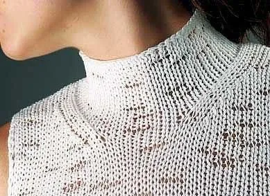 9. Довязав до высокой точки плеча, ввести сначала в работу иглы левого плеча, закрыть их нестягивающим способом. Провязать 1 ряд, далее закрыть петли правого плеча.