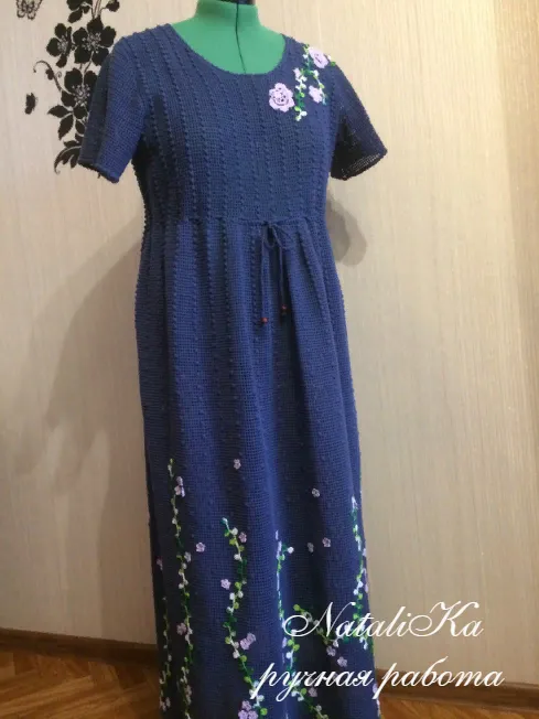 Лилит, ну конечно не против. У меня в процессе вязания были большие сомнения и по поводу цвета и по поводу фасона.Муж вообще сказал, что на огородное пугало одевают краше. Цвет необычный, джинс называется. И без вышивки смотрится мрачновато, а вот вышивка освежила и оживила платье. И тут все согласились, что платье все-таки или вопреки всему, удалось. Самой понравился конечный результат. Спасибо.
