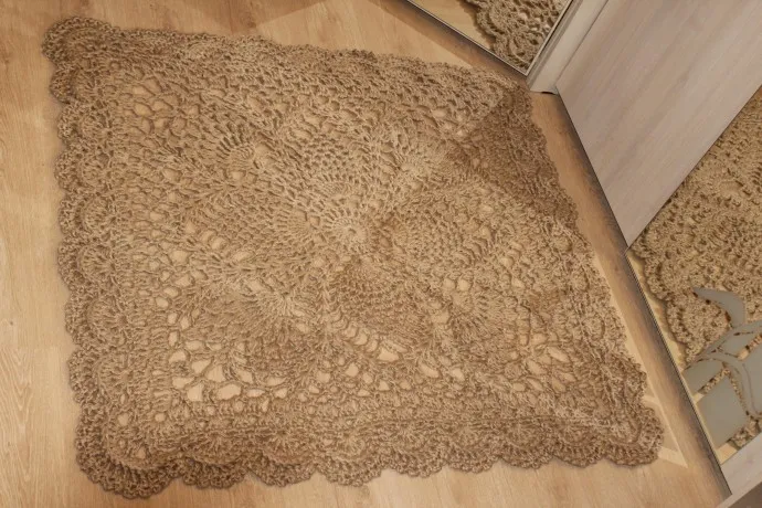 Ковер ручной работы связан крючком номер 6 в нить джутовая 2 мм в 2 сложения. размер ковра 110 см вес ковра 2600 . если интересно где можно купить такую пряжу длдя заказа пишитие в вотсап 89005760163