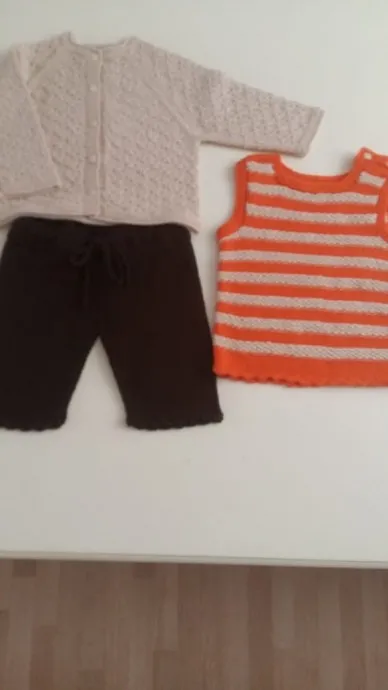 Костюмчик из трех предметов связан для 1,5 годовалой внучки - жакетик, маечка и короткие штанишки "Капри".
