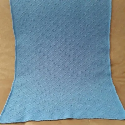 У двух моих подруг родились внуки (практически в одно время). И вот связала в подарок такие пледики (начало моего обучения на вязальной машине). Связаны из Пехорской пряжи "Австралийский меринос" - 100г/400м, 95% мериносовая шерсть, 5% акрил. Края обвязаны крючком.