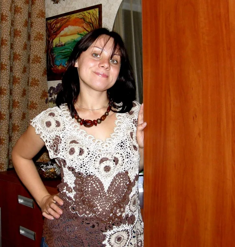 Выполнена из ниточек "Maxi" крюком №1 в технике ИК. Связала давно, а фотографии сделала только сейчас.Все элементы для туники , вернее схемы этих элементов брала из журнала "Дуплет", ну, конечно, с некоторой своей доработкой.