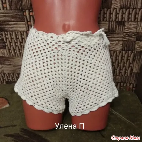 Связались шортики крючком из бобинного хлопка с акрилом и стрейчем,на пробу.