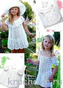Сборка: выполните боковые швы и швы рукавов. Рукава пришейте в верхней части на 6 см. Обвяжите вырез горловины 1 рядом ст. б/н, 1 рядом ст. с/н и 1 рядом ст. б/н. Свяжите шнурок из возд. п. и проденьте его по верхнему краю, как показано на фото.