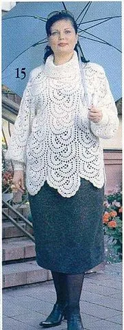 Очень простой, легкий, но от этого не менее эффектный узор — белый. Много раз вязала его. Из разной пряжи: из ч/ш, из п/ш, из вискозы «Сапфир»: везде смотрится замечательно! Он легко расширяется, легко сужается, легко делать вытачки, вырезы горловины, проймы, легко сочетать с филейной сеткой и сеткой из в. п. И смотрится дорого, элегантно. Чудо, а не узор! Если не планируете вставки из сеток делать, лучше соединять ленты в процессе вязания: быстро, без обрыва нити, крепко-надежно, аккуратно. Не откладывайте в долгий ящик! Вяжи́те! И радуйтесь результату!