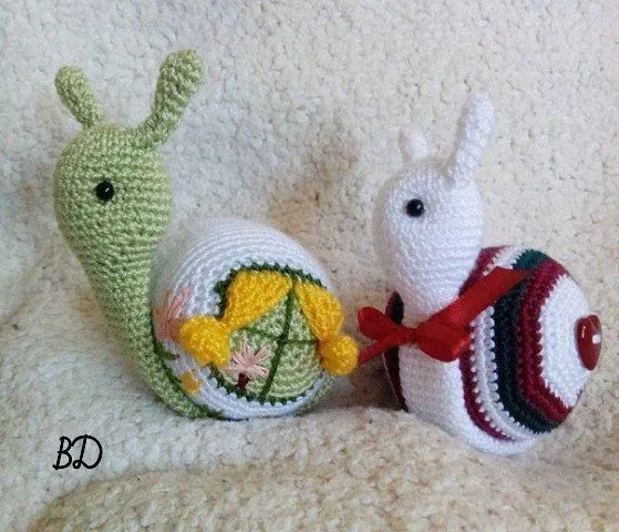 Пришить рожки к голове. Пришить ракушку к туловищу.