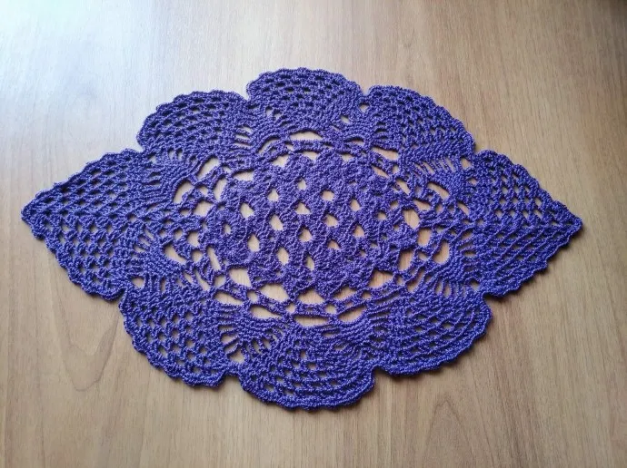 Первой связала фиолетовую салфетку. Размер салфетки 41 на 25 см.