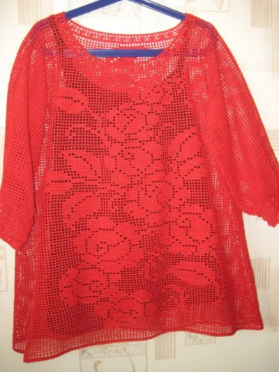 Туника связана из 100% хлопка "Ализе мисс" 280 метров в 50 грамм. Крючок 1.5 кловер. На 58-60размер 600 грамм.Связано по мастер -классу Валентины Дьяченко.