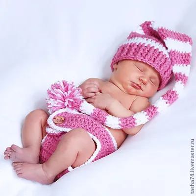 Сейчас много фотографируют, делают фотосессии. Жалко не было у меня модельки так хотелось примерить. Из множества вариантов выбрали гномика. Сказали, что зверушки зайки и котики уже поднадоели. Фото с младенчиком взято из интернета, как примерно выглядит комплектик на малыше.