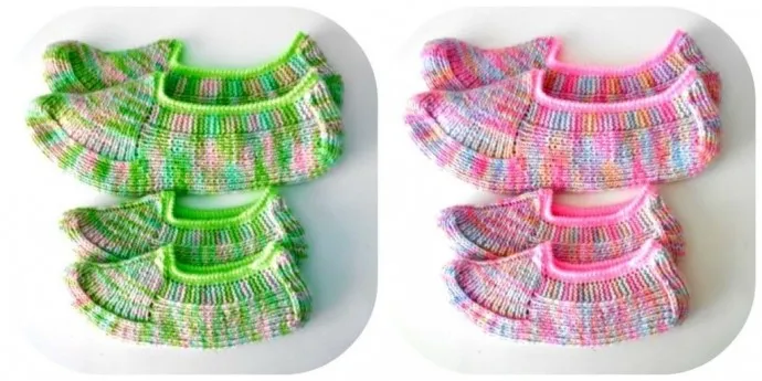 Теперь начинаем вязать боковые части вместе с подошвой, для этого набираем по бокам по 12 петель, дальше вяжем прямо, не забывая первые и последние 5 петель вязать платочной вязкой.