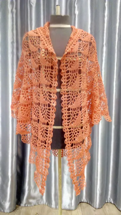Шаль коралловая, вязаная крючком. К сожалению фото не передаёт цвет. Нитки "Пчёлка" 100% акрил.
