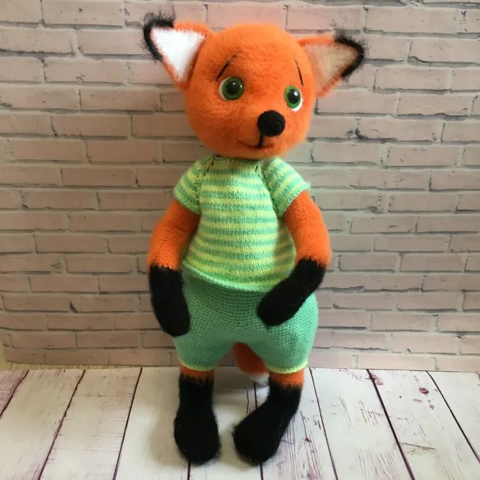 Лисёнок связан по бесплатному мастер-классу от IRINELY.ART . Размер игрушки — около 17 см, может стоять с опорой на хвост. Плащ-накидка снимается