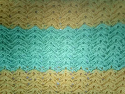Хотелось чего-:нибудь яркого, летнего, что в итоге и получилось. Вязала по мастер-классу Ангелины Озимок "Кофточка бирюза". Понравилось, очень просто и в то же время нарядно. На первой фотографии рисунок крупным планом. Все остальное на фотографиях. С уважением, Ольга Тында.