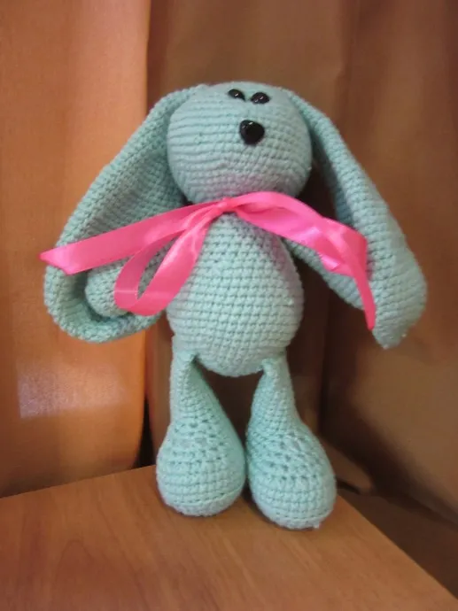 Вот решила связать зайку необычного - мятного цвета.