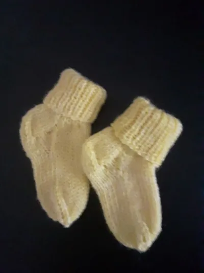 тут уже был плед для новорождённой. Носочки для этой же крохи) Повторюсь, лето в этом году не очень. Посмотрела на погоду, на малышку- надо носочки! Желтенькие поменьше из полушерсти, сиреневые чуть побольше из верблюжей шерсти, тепленькие. Сейчас носят желтенькие, сиреневые на вырост!