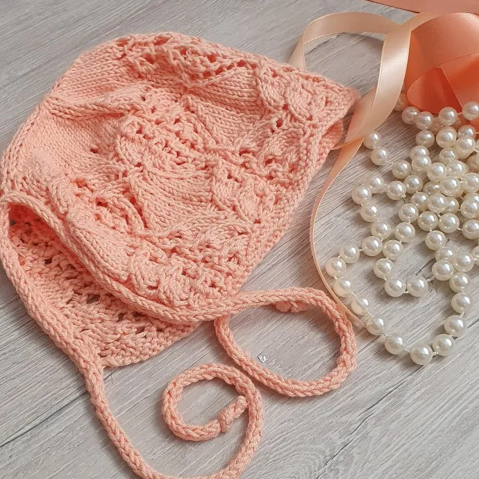 К платьишку связалась и шапочка-чепчик.Связана единым полотном.Завязочки и низ шапочки обвязан шнуром I-cord.Пряжа Gazzal baby cotton.