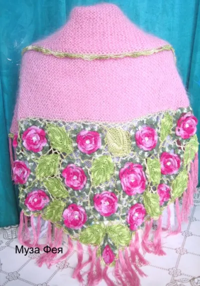 Шаль "Вдыхая розы аромат..." Крючок+спицы