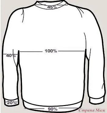 Вы решили связать свитер в подарок? Хотите, чтобы это было сюрпризом? Если вы знаете хотя бы примерный объем груди, то скажу, что это уже успех. Ведь составить выкройку уже вполне реально. Берем объем груди, как 100%, а остальные мерки будут выступать долей от 100% (объема груди).Другими словам, обхват горловины равен 45% от объема груди;обхват рукава в самом широком месте (перед формированием оката) = 40%;обхват охвата кисти (манжет свитера) - 20%;обхват свитера по низу - 90%.Давайте попробуем еще и математические расчеты: