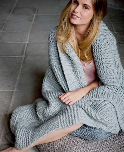Плед с крупным рельефным узором лучше всего вязать из толстой, чуть рыхловатой пряжи.