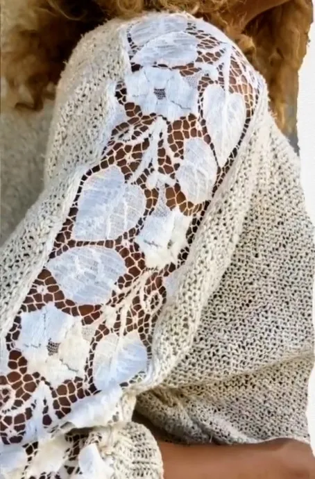 Удивительное сочетание тонкого фабричного кружева и вязания делает этот простой джемперок изящнее и женственнее.