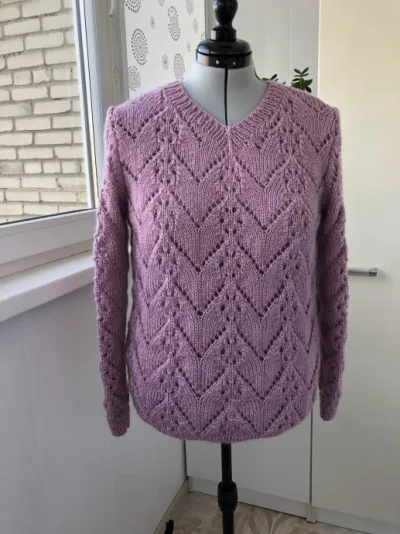 Очень красивый пуловер. Узор, выполнение и цвет прекрасны. Вы умничка.