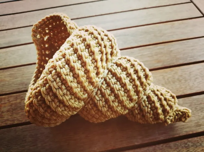 Выполнено крючком номер 4 из ПЭ шнура. Основные приемы: ст б/н и с ст. Вязала по мотивам мастер-классов на ит.яз.