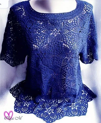 Синяя кофточка мотивами. Крючок.