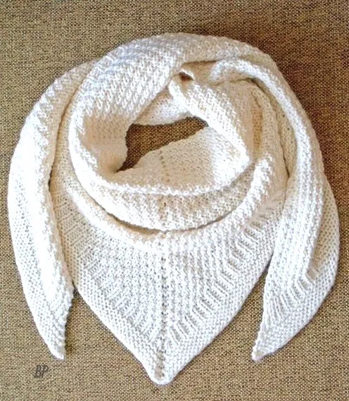 Этот узор имеет свойство стягивать полотно, поэтому со спиц шаль будет больше напоминать корявенький ромб, шаль необходимо хорошенько увлажнить и растянуть.