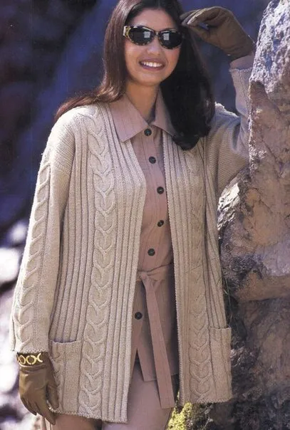 Плотность вязания. Резинка: 27 п. и 35 р. = 10 х 10 см; лицевая гладь: 24 п. и 35 р. в 10 х 10 см; коса: ширина 6 см.