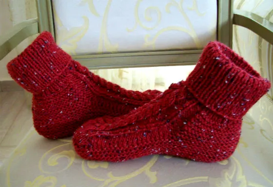 Вязаные тапочки-носки с косой.