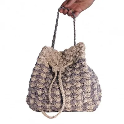 The bag is made crochet number 4. The dimensions are 30x30x22 cm. The diameter of the eyelets is 18 mm.the yarn is Italian Thay. The handle is 35 cm high. Thanks for your attention