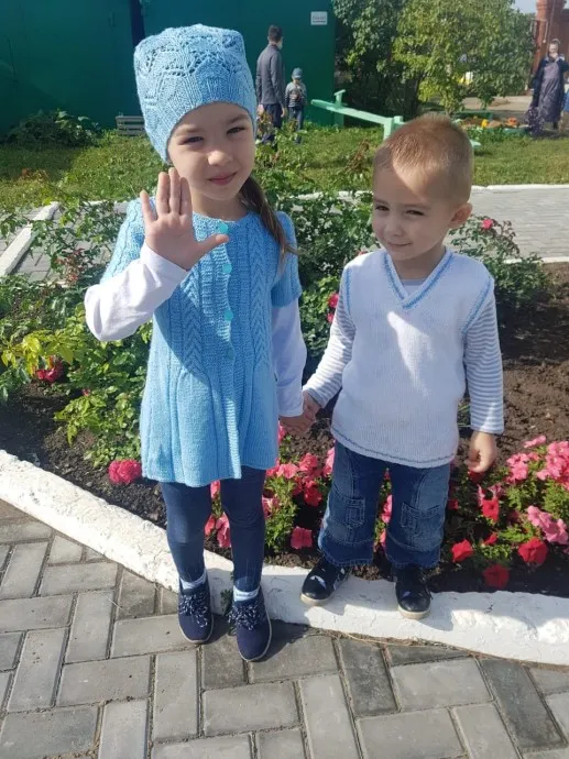 Представляю свои работы на моих внучатах Аннушке и Игорьке. Я их раньше по отдельности выставляла, теперь вместе решила. На Анюте кардиганчик и ажурная шапочка, на Игореше- жилетик. К концу лета добавилась еще и косыночка. Вязалось все медленно-два огорода как никак, теперь в планах тельняшку Игорю и юбочку Аннушке в том же стиле.