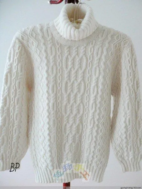 Мужской белоснежный свитер с аранами