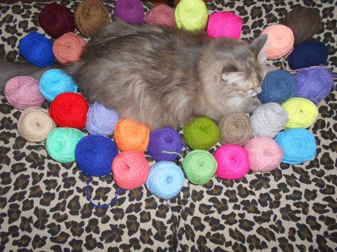 Удивительно. Стоит связать даже хоть маленький отрезочек, как они тут как тут. Хотя-бы лапочки положат