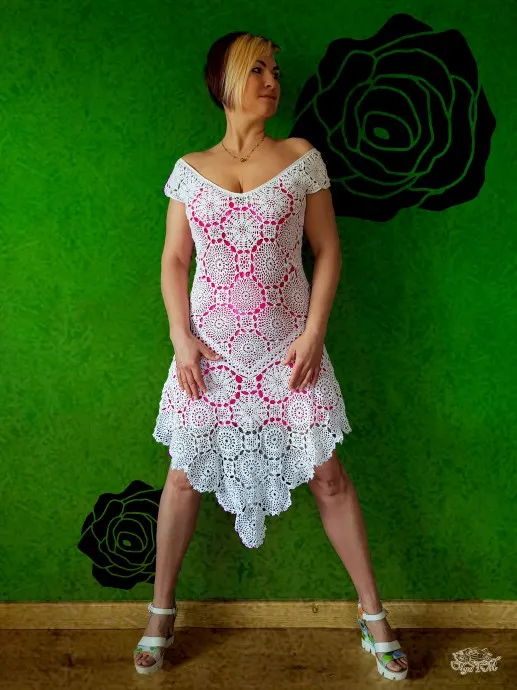 Вечернее платье крючком из мотивов
