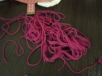 Кучу рваной пряжи, местами с утолщением, местами с обрывами. Ладно я человек терпеливый думаю порвалась при перевозке, а нет в середине мотка ни чуть не лучше, но мои железные нервы не пробьешь, думала моточек попался брачный. Этот брачный моточек закончился и вот, что я вижу в новом моточке, пряжа просто кусками.