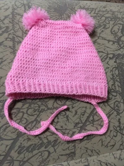 Когда шапочку связала, дочка попросила сделать подклад, пока внучка спала подклад пришился.